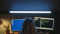 woman in black shirt sitting in front of computer monitor プログラミング学習