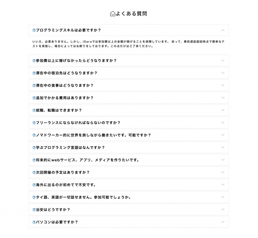 ・アコーディオン(よくある質問部分)の作成
